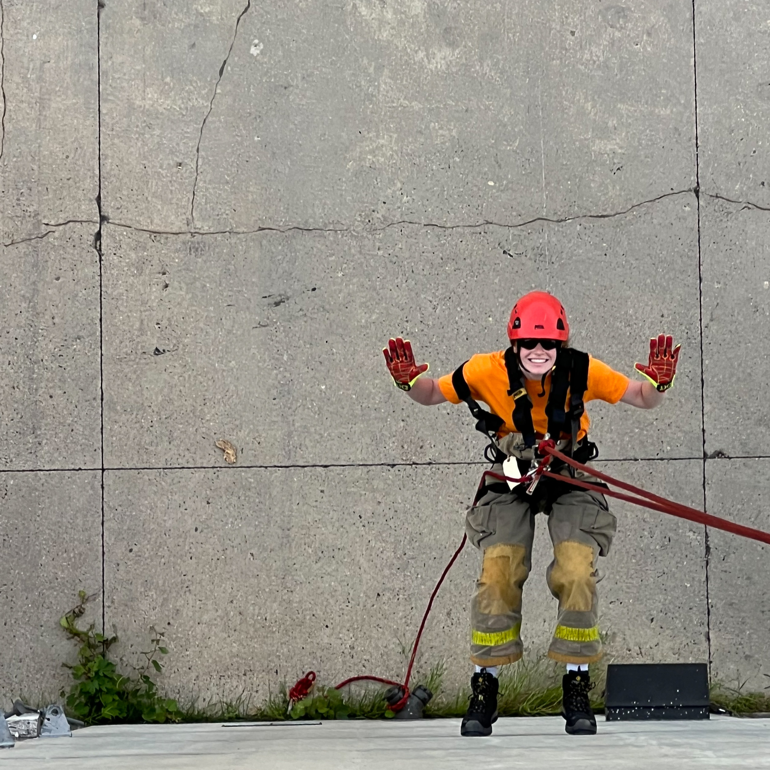 - High angle rope rescue where trained firefighters will lower the team individually with full control over the ropes/safety lines. All safety equipment will be used which includes harnesses, helmets, ropes, and safety lines.