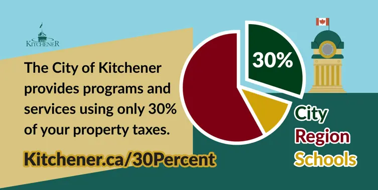 With only 30% of your total tax bill, City of Kitchener offers the essential services you and your family rely on. We’re proud to deliver water, service roads and infrastructure, provide community services, maintain public parks, and more.